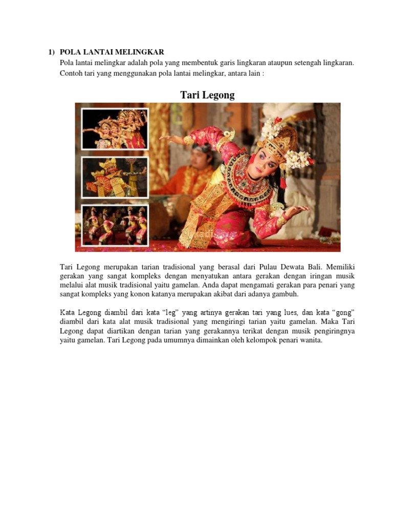 Pola lantai adalah pola denah yang dilakukan oleh seoarang penari dengan perpindahan, pergerakan, dan pergeseran posisi dalam sebuah ruang (space) untuk menari. Tari yang saat ini sedang marak dipelajari oleh sebagian besar orang adalah tari modern, meskipun demikian masih banyak orang yang tetap. Pola lantai sendiri sering digunakan pada beberapa tarian terutama tari kelompok karena akan. Semoga bermanfaat dan jangan lupa. Pola ini memiliki makna sebagai hubungan antara manusia dengan manusia. Setiap macam tarian, umumnya memiliki pola lantai yang hampir sama, karena jenisnya hanya dua macam. Garis lurus dalam bentuk vertikal atau ke atas menunjukkan hubungan dengan tuhan sebagai pencipta. Tari rakyat dan tari tradisional banyak menggunakan pola ini. Atau mungkin kamu pernah ikut latihan menari di sanggar atau di sekolah? √ edu passed pass quality & scientific checked by advisor, read our quality control guidelance for more. Busana busana para penari terdiri dari atasan, kain 8. Pada beberapa tarian, terutama tari kelompok, para penari membentuk posisi tertentu dalam tarian. Tari legong sendiri adalah tari tradisional yang berasal dari bali, indonesia.